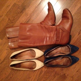 Pointy Suede Flats in Natural Suede (available on 6pm) and Navy (with Silver trim) – Corso Como. Also trusty and comfortable, these flats add an element of put-togetherness to casual outfits. These colors go with almost any outfit- allowing for flexibility in my wardrobe. I wore the tan ones on Day 1 and they proved to be excellent driving shoes.